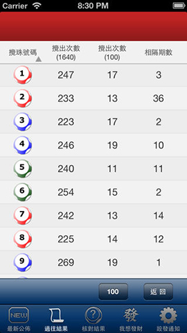 - 簡易統計更易查閱出最近相隔期數及過往號碼攪出次數